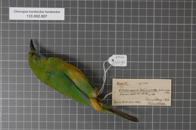 Keywords: Naturalis Biodiversity Center - RMNH.AVES.127192 1 - Chloropsis hardwickei hardwickei Jardine & Selby, 1830 - Irenidae - bird skin specimen.jpeg artwork Dimensions artwork Document type Irenidae Chloropsis Individual count 1 Infraspecific epithet hardwickei Infraspecific rank Institution Naturalis Kind of unit artwork Kind of unit specimen skin Life stage Himalaya Darjiling Medium artwork Nomenclatural code Sex remark on label female lab Occurrence ID page Other fields Other versions artwork Permission license Naturalis donation CC-0 Publication location Scientific name Chloropsis hardwickei hardwickei Jardine Selby 1830 Scientific name authorship Jardine Selby 1830 male Source url http //bioportal naturalis nl Specific epithet hardwickei State or province Himalaya Darjiling Subject keywords artwork Subject keywords publication Title artwork Title publication Type status Uploaded with GWToolset Naturalis_Biodiversity_Center_-_RMNH AVES 127192_1_-_Chloropsis_hardwickei_hardwickei_Jardine_ _Selby _1830_-_Irenidae_-_bird_skin_specimen http //medialib naturalis nl/file/id/RMNH AVES 127192_1/format/large Media donated by Naturalis Biodiversity Center Songbird specimens at Naturalis Biodiversity Center Chloropsis hardwickii Chloropsis |