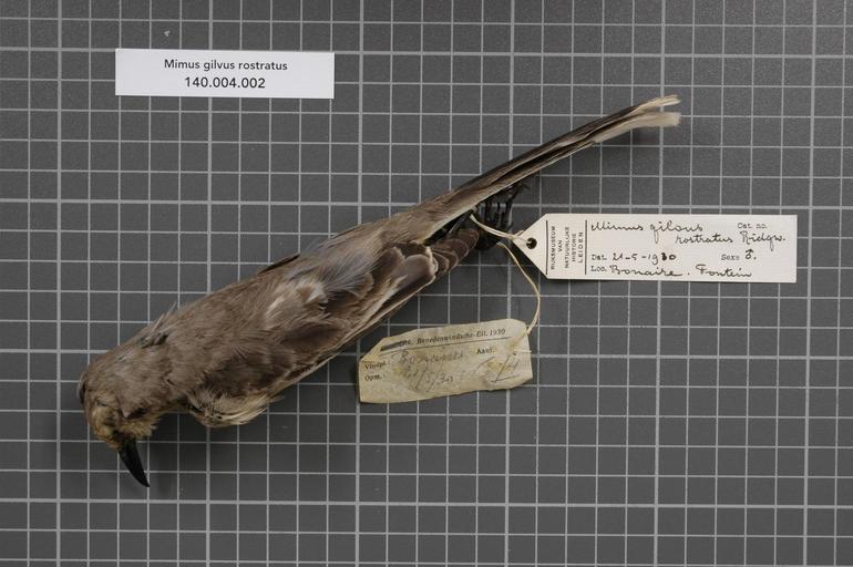 Keywords: Naturalis Biodiversity Center - RMNH.AVES.128733 1 - Mimus gilvus rostratus Ridgway, 1884 - Mimidae - bird skin specimen.jpeg artwork Dimensions artwork Document type Mimidae Mimus Individual count 1 Infraspecific epithet rostratus Infraspecific rank Institution Naturalis Kind of unit artwork Kind of unit specimen skin Life stage Medium artwork Nomenclatural code Region remark on field label Benedenwindsche-Eil Occurrence ID page Other fields Other versions artwork Permission license Naturalis donation CC-0 Publication location Scientific name Mimus gilvus rostratus Ridgway 1884 Scientific name authorship Ridgway 1884 male Source url http //bioportal naturalis nl Specific epithet gilvus State or province Bonaire Subject keywords artwork Subject keywords publication Title artwork Title publication Type status Uploaded with GWToolset Naturalis_Biodiversity_Center_-_RMNH AVES 128733_1_-_Mimus_gilvus_rostratus_Ridgway _1884_-_Mimidae_-_bird_skin_specimen http //medialib naturalis nl/file/id/RMNH AVES 128733_1/format/large Media donated by Naturalis Biodiversity Center Songbird specimens at Naturalis Biodiversity Center Mimus gilvus museum specimens |