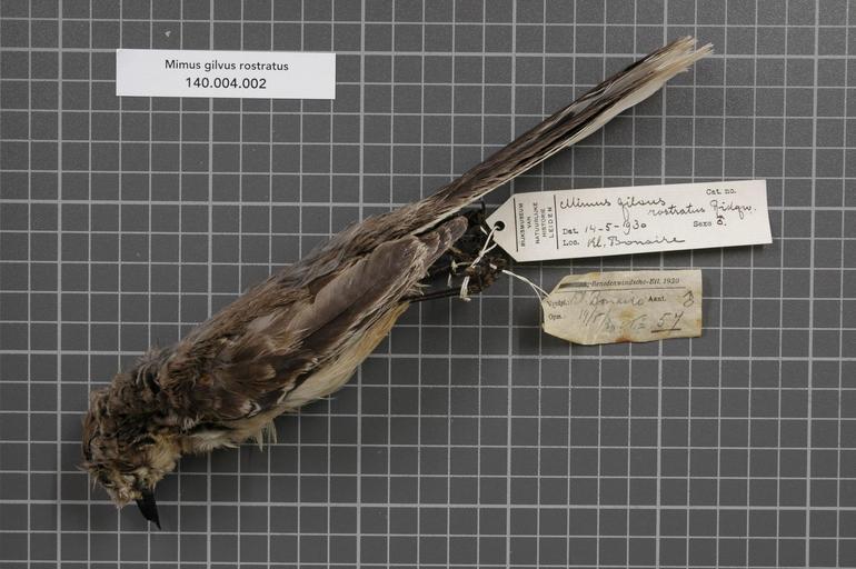 Keywords: Naturalis Biodiversity Center - RMNH.AVES.128732 1 - Mimus gilvus rostratus Ridgway, 1884 - Mimidae - bird skin specimen.jpeg artwork Dimensions artwork Document type Mimidae Mimus Individual count 1 Infraspecific epithet rostratus Infraspecific rank Institution Naturalis Kind of unit artwork Kind of unit specimen skin Life stage Medium artwork Nomenclatural code Region remark on field label Benedenwindsche-Eil Occurrence ID page Other fields Other versions artwork Permission license Naturalis donation CC-0 Publication location Scientific name Mimus gilvus rostratus Ridgway 1884 Scientific name authorship Ridgway 1884 male Source url http //bioportal naturalis nl Specific epithet gilvus State or province Subject keywords artwork Subject keywords publication Title artwork Title publication Type status Uploaded with GWToolset Naturalis_Biodiversity_Center_-_RMNH AVES 128732_1_-_Mimus_gilvus_rostratus_Ridgway _1884_-_Mimidae_-_bird_skin_specimen http //medialib naturalis nl/file/id/RMNH AVES 128732_1/format/large Media donated by Naturalis Biodiversity Center Songbird specimens at Naturalis Biodiversity Center Mimus gilvus museum specimens |