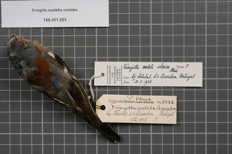 Keywords: Naturalis Biodiversity Center - RMNH.AVES.57136 1 - Fringilla coelebs coelebs Linnaeus, 1758 - Fringillidae - bird skin specimen.jpeg artwork Dimensions artwork Document type Fringillidae Fringilla Individual count 1 Infraspecific epithet coelebs Infraspecific rank Institution Naturalis Kind of unit artwork Kind of unit specimen skin Life stage Portugal bij Setubal Z van Lissabon Medium artwork Nomenclatural code Occurrence ID page Other fields Other versions artwork Permission license Naturalis donation CC-0 Publication location Scientific name Fringilla coelebs coelebs Linnaeus 1758 Scientific name authorship Linnaeus 1758 male Source url http //bioportal naturalis nl Specific epithet coelebs State or province Subject keywords artwork Subject keywords publication Title artwork Title publication Type status Uploaded with GWToolset Naturalis_Biodiversity_Center_-_RMNH AVES 57136_1_-_Fringilla_coelebs_coelebs_Linnaeus _1758_-_Fringillidae_-_bird_skin_specimen http //medialib naturalis nl/file/id/RMNH AVES 57136_1/format/large Media donated by Naturalis Biodiversity Center Songbird specimens at Naturalis Biodiversity Center Fringilla coelebs Fringilla |