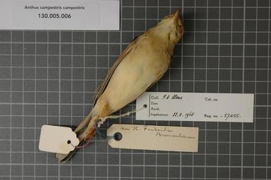 Keywords: Naturalis Biodiversity Center - RMNH.AVES.57455 2 - Anthus campestris campestris (Linnaeus, 1758) - Motacillidae - bird skin specimen.jpeg artwork Dimensions artwork Document type Motacillidae Anthus Individual count 1 Infraspecific epithet campestris Infraspecific rank Institution Naturalis Kind of unit artwork Kind of unit specimen skin Life stage Italiƫ Puglia Foggia Medium artwork Nomenclatural code Occurrence ID page Other fields Other versions artwork Permission license Naturalis donation CC-0 Publication location Scientific name Anthus campestris campestris Linnaeus 1758 Scientific name authorship Linnaeus 1758 male Source url http //bioportal naturalis nl Specific epithet campestris State or province Puglia Subject keywords artwork Subject keywords publication Title artwork Title publication Type status Uploaded with GWToolset Naturalis_Biodiversity_Center_-_RMNH AVES 57455_2_-_Anthus_campestris_campestris_ Linnaeus _1758 _-_Motacillidae_-_bird_skin_specimen http //medialib naturalis nl/file/id/RMNH AVES 57455_2/format/large Media donated by Naturalis Biodiversity Center Songbird specimens at Naturalis Biodiversity Center Anthus campestris Anthus |