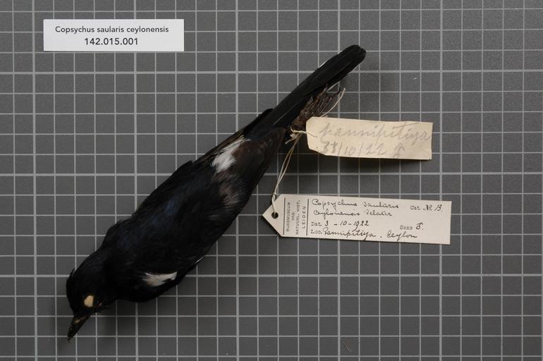 | Keywords: Naturalis Biodiversity Center - RMNH.AVES.129270 1 - Copsychus saularis ceylonensis Sclater, 1861 - Turdidae - bird skin specimen.jpeg artwork Dimensions artwork Document type Turdidae Copsychus Individual count 1 Infraspecific epithet ceylonensis Infraspecific rank Institution Naturalis Kind of unit artwork Kind of unit specimen skin Life stage Medium artwork Nomenclatural code Occurrence ID page Other fields Other versions artwork Permission license Naturalis donation CC-0 Publication location Scientific name Copsychus saularis ceylonensis Sclater 1861 Scientific name authorship Sclater 1861 male Source url http //bioportal naturalis nl Specific epithet saularis State or province Subject keywords artwork Subject keywords publication Title artwork Title publication Type status Uploaded with GWToolset Naturalis_Biodiversity_Center_-_RMNH AVES 129270_1_-_Copsychus_saularis_ceylonensis_Sclater _1861_-_Turdidae_-_bird_skin_specimen http //medialib naturalis nl/file/id/RMNH AVES 129270_1/format/large Media donated by Naturalis Biodiversity Center Songbird specimens at Naturalis Biodiversity Center Copsychus saularis museum specimens |