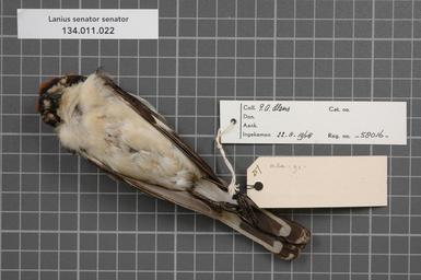 Keywords: Naturalis Biodiversity Center - RMNH.AVES.58016 2 - Lanius senator senator Linnaeus, 1758 - Laniidae - bird skin specimen.jpeg artwork Dimensions artwork Document type Laniidae Lanius Individual count 1 Infraspecific epithet senator Infraspecific rank Institution Naturalis Kind of unit artwork Kind of unit specimen skin Life stage Portugal bij Setubal Z van Lissabon Medium artwork Nomenclatural code Sex remark On Hens label 'male' Occurrence ID page Other fields Other versions artwork Permission license Naturalis donation CC-0 Publication location Scientific name Lanius senator senator Linnaeus 1758 Scientific name authorship Linnaeus 1758 male Source url http //bioportal naturalis nl Specific epithet senator State or province Subject keywords artwork Subject keywords publication Title artwork Title publication Type status Uploaded with GWToolset Naturalis_Biodiversity_Center_-_RMNH AVES 58016_2_-_Lanius_senator_senator_Linnaeus _1758_-_Laniidae_-_bird_skin_specimen http //medialib naturalis nl/file/id/RMNH AVES 58016_2/format/large Media donated by Naturalis Biodiversity Center Songbird specimens at Naturalis Biodiversity Center Lanius senator Lanius |
