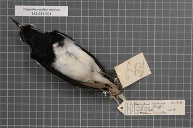 | Keywords: Naturalis Biodiversity Center - RMNH.AVES.129325 1 - Copsychus saularis musicus (Raffles, 1822) - Turdidae - bird skin specimen.jpeg artwork Dimensions artwork Document type Turdidae Copsychus Individual count 1 Infraspecific epithet musicus Infraspecific rank Institution Naturalis Kind of unit artwork Kind of unit specimen skin Life stage Medium artwork Nomenclatural code Additional info s o k Occurrence ID page Other fields Other versions artwork Permission license Naturalis donation CC-0 Publication location Scientific name Copsychus saularis musicus Raffles 1822 Scientific name authorship Raffles 1822 male Source url http //bioportal naturalis nl Specific epithet saularis State or province Subject keywords artwork Subject keywords publication Title artwork Title publication Type status Uploaded with GWToolset Naturalis_Biodiversity_Center_-_RMNH AVES 129325_1_-_Copsychus_saularis_musicus_ Raffles _1822 _-_Turdidae_-_bird_skin_specimen http //medialib naturalis nl/file/id/RMNH AVES 129325_1/format/large Media donated by Naturalis Biodiversity Center Songbird specimens at Naturalis Biodiversity Center Copsychus saularis museum specimens |
