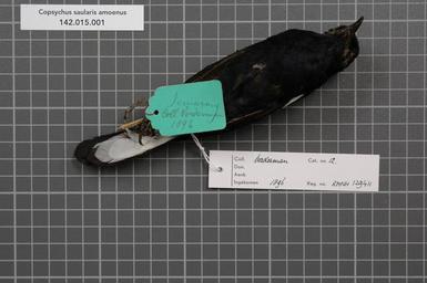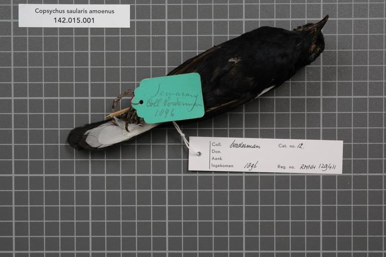 | Keywords: Naturalis Biodiversity Center - RMNH.AVES.129411 2 - Copsychus saularis amoenus (Horsfield, 1821) - Turdidae - bird skin specimen.jpeg artwork Dimensions artwork Document type Turdidae Copsychus Individual count 1 Infraspecific epithet amoenus Infraspecific rank Institution Naturalis Kind of unit artwork Kind of unit specimen skin Life stage Medium artwork Nomenclatural code Sex remark Vorderman label no information about the SexRMNH label male Occurrence ID page Other fields Other versions artwork Permission license Naturalis donation CC-0 Publication location Scientific name Copsychus saularis amoenus Horsfield 1821 Scientific name authorship Horsfield 1821 male Source url http //bioportal naturalis nl Specific epithet saularis State or province Java Semarang Subject keywords artwork Subject keywords publication Title artwork Title publication Type status Uploaded with GWToolset Naturalis_Biodiversity_Center_-_RMNH AVES 129411_2_-_Copsychus_saularis_amoenus_ Horsfield _1821 _-_Turdidae_-_bird_skin_specimen http //medialib naturalis nl/file/id/RMNH AVES 129411_2/format/large Media donated by Naturalis Biodiversity Center Songbird specimens at Naturalis Biodiversity Center Copsychus saularis museum specimens |