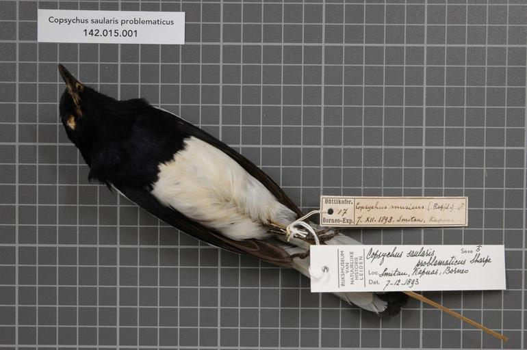 | Keywords: Naturalis Biodiversity Center - RMNH.AVES.129436 1 - Copsychus saularis problematicus Sharpe, 1876 - Turdidae - bird skin specimen.jpeg artwork Dimensions artwork Document type Turdidae Copsychus Individual count 1 Infraspecific epithet problematicus Infraspecific rank Institution Naturalis Kind of unit artwork Kind of unit specimen skin Life stage Medium artwork Nomenclatural code Occurrence ID page Other fields Other versions artwork Permission license Naturalis donation CC-0 Publication location Scientific name Copsychus saularis problematicus Sharpe 1876 Scientific name authorship Sharpe 1876 male Source url http //bioportal naturalis nl Specific epithet saularis State or province Borneo Kapuas Subject keywords artwork Subject keywords publication Title artwork Title publication Type status Uploaded with GWToolset Naturalis_Biodiversity_Center_-_RMNH AVES 129436_1_-_Copsychus_saularis_problematicus_Sharpe _1876_-_Turdidae_-_bird_skin_specimen http //medialib naturalis nl/file/id/RMNH AVES 129436_1/format/large Media donated by Naturalis Biodiversity Center Songbird specimens at Naturalis Biodiversity Center Copsychus saularis museum specimens |