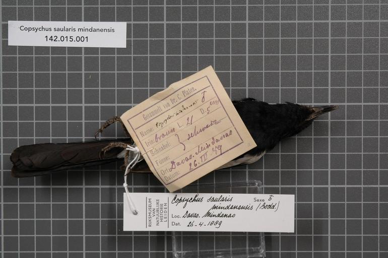 | Keywords: Naturalis Biodiversity Center - RMNH.AVES.129469 1 - Copsychus saularis mindanensis (Boddaert, 1783) - Turdidae - bird skin specimen.jpeg artwork Dimensions artwork Document type Turdidae Copsychus Individual count 1 Infraspecific epithet mindanensis Infraspecific rank Institution Naturalis Kind of unit artwork Kind of unit specimen skin Life stage Medium artwork Nomenclatural code Occurrence ID page Other fields Other versions artwork Permission license Naturalis donation CC-0 Publication location Scientific name Copsychus saularis mindanensis Boddaert 1783 Scientific name authorship Boddaert 1783 male Source url http //bioportal naturalis nl Specific epithet saularis State or province Mindanao Davao Subject keywords artwork Subject keywords publication Title artwork Title publication Type status Uploaded with GWToolset Naturalis_Biodiversity_Center_-_RMNH AVES 129469_1_-_Copsychus_saularis_mindanensis_ Boddaert _1783 _-_Turdidae_-_bird_skin_specimen http //medialib naturalis nl/file/id/RMNH AVES 129469_1/format/large Media donated by Naturalis Biodiversity Center Songbird specimens at Naturalis Biodiversity Center Copsychus saularis museum specimens |