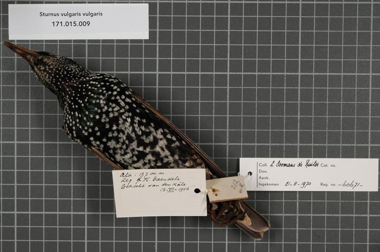 | Keywords: Naturalis Biodiversity Center - RMNH.AVES.60671 2 - Sturnus vulgaris vulgaris Linnaeus, 1758 - Sturnidae - bird skin specimen.jpeg artwork Dimensions artwork Document type Sturnidae Sturnus Individual count 1 Infraspecific epithet vulgaris Infraspecific rank Institution Naturalis Kind of unit artwork Kind of unit specimen skin Life stage Netherlands Gelderland Hattem Medium artwork Nomenclatural code Occurrence ID page Other fields Other versions artwork Permission license Naturalis donation CC-0 Publication location Scientific name Sturnus vulgaris vulgaris Linnaeus 1758 Scientific name authorship Linnaeus 1758 male Source url http //bioportal naturalis nl Specific epithet vulgaris State or province Gelderland Subject keywords artwork Subject keywords publication Title artwork Title publication Type status Uploaded with GWToolset Naturalis_Biodiversity_Center_-_RMNH AVES 60671_2_-_Sturnus_vulgaris_vulgaris_Linnaeus _1758_-_Sturnidae_-_bird_skin_specimen http //medialib naturalis nl/file/id/RMNH AVES 60671_2/format/large Media donated by Naturalis Biodiversity Center Songbird specimens at Naturalis Biodiversity Center Sturnus vulgaris museum specimens |