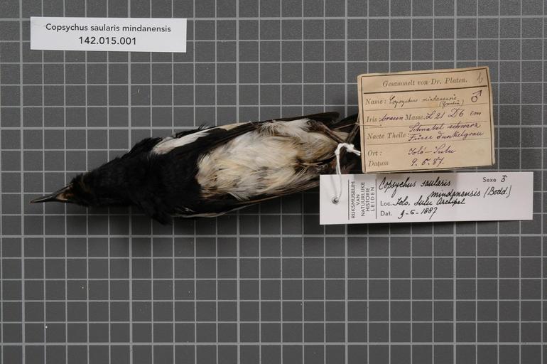 | Keywords: Naturalis Biodiversity Center - RMNH.AVES.129467 1 - Copsychus saularis mindanensis (Boddaert, 1783) - Turdidae - bird skin specimen.jpeg artwork Dimensions artwork Document type Turdidae Copsychus Individual count 1 Infraspecific epithet mindanensis Infraspecific rank Institution Naturalis Kind of unit artwork Kind of unit specimen skin Life stage Medium artwork Nomenclatural code Additional info b Occurrence ID page Other fields Other versions artwork Permission license Naturalis donation CC-0 Publication location Scientific name Copsychus saularis mindanensis Boddaert 1783 Scientific name authorship Boddaert 1783 male Source url http //bioportal naturalis nl Specific epithet saularis State or province Sulu Archipel Subject keywords artwork Subject keywords publication Title artwork Title publication Type status Uploaded with GWToolset Naturalis_Biodiversity_Center_-_RMNH AVES 129467_1_-_Copsychus_saularis_mindanensis_ Boddaert _1783 _-_Turdidae_-_bird_skin_specimen http //medialib naturalis nl/file/id/RMNH AVES 129467_1/format/large Media donated by Naturalis Biodiversity Center Songbird specimens at Naturalis Biodiversity Center Copsychus saularis museum specimens |