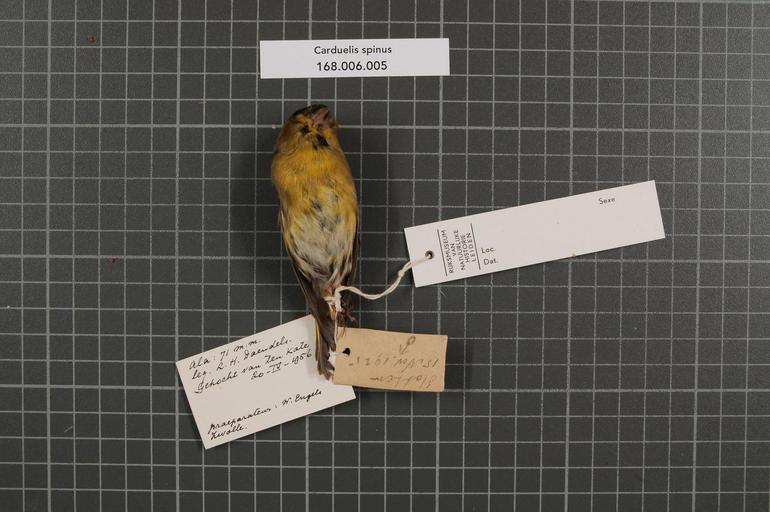 | Keywords: Naturalis Biodiversity Center - RMNH.AVES.60742 2 - Carduelis spinus (Linnaeus, 1758) - Fringillidae - bird skin specimen.jpeg artwork Dimensions artwork Document type Fringillidae Carduelis Individual count 1 Infraspecific epithet Infraspecific rank Institution Naturalis Kind of unit artwork Kind of unit specimen skin Life stage Gld Hattem Medium artwork Nomenclatural code ADDITIONAL preparation info W Engels Zwolle Occurrence ID page Other fields Other versions artwork Permission license Naturalis donation CC-0 Publication location Scientific name Carduelis spinus Linnaeus 1758 Scientific name authorship Linnaeus 1758 male Source url http //bioportal naturalis nl Specific epithet spinus State or province Gld Subject keywords artwork Subject keywords publication Title artwork Title publication Type status Uploaded with GWToolset Naturalis_Biodiversity_Center_-_RMNH AVES 60742_2_-_Carduelis_spinus_ Linnaeus _1758 _-_Fringillidae_-_bird_skin_specimen http //medialib naturalis nl/file/id/RMNH AVES 60742_2/format/large Media donated by Naturalis Biodiversity Center Songbird specimens at Naturalis Biodiversity Center Spinus spinus Carduelis |