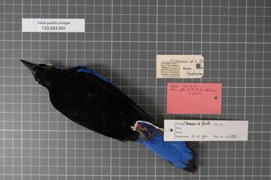 Keywords: Naturalis Biodiversity Center - RMNH.AVES.61226 2 - Irena puella criniger Sharpe, 1877 - Irenidae - bird skin specimen.jpeg artwork Dimensions artwork Document type Irenidae Irena Individual count 1 Infraspecific epithet criniger Infraspecific rank Institution Naturalis Kind of unit artwork Kind of unit specimen skin Life stage Indonesia N O Sumatra Langkat Telaga Sait bij Pangkalan Brandan Medium artwork Nomenclatural code Occurrence ID page Other fields Other versions artwork Permission license Naturalis donation CC-0 Publication location Scientific name Irena puella criniger Sharpe 1877 Scientific name authorship Sharpe 1877 male Source url http //bioportal naturalis nl Specific epithet puella State or province N O Sumatra Langkat Subject keywords artwork Subject keywords publication Title artwork Title publication Type status Uploaded with GWToolset Naturalis_Biodiversity_Center_-_RMNH AVES 61226_2_-_Irena_puella_criniger_Sharpe _1877_-_Irenidae_-_bird_skin_specimen http //medialib naturalis nl/file/id/RMNH AVES 61226_2/format/large Media donated by Naturalis Biodiversity Center Songbird specimens at Naturalis Biodiversity Center Irena puella Irena |