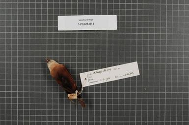 | Keywords: Naturalis Biodiversity Center - RMNH.AVES.63628 1 - Lonchura maja (Linnaeus, 1766) - Estrildidae - bird skin specimen.jpeg artwork Dimensions artwork Document type Estrildidae Lonchura Individual count 1 Infraspecific epithet Infraspecific rank Institution Naturalis Kind of unit artwork Kind of unit specimen skin Life stage Indonesia Java Preanger Pangerango Medium artwork Nomenclatural code Occurrence ID page Other fields Other versions artwork Permission license Naturalis donation CC-0 Publication location Scientific name Lonchura maja Linnaeus 1766 Scientific name authorship Linnaeus 1766 male Source url http //bioportal naturalis nl Specific epithet maja State or province Java Preanger Subject keywords artwork Subject keywords publication Title artwork Title publication Type status Uploaded with GWToolset Naturalis_Biodiversity_Center_-_RMNH AVES 63628_1_-_Lonchura_maja_ Linnaeus _1766 _-_Estrildidae_-_bird_skin_specimen http //medialib naturalis nl/file/id/RMNH AVES 63628_1/format/large Media donated by Naturalis Biodiversity Center Songbird specimens at Naturalis Biodiversity Center Lonchura maja Lonchura |