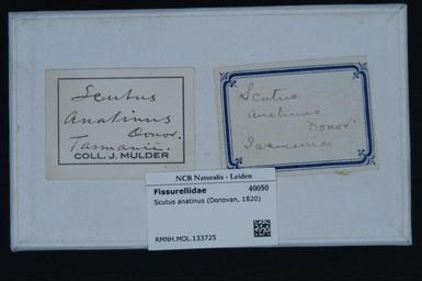 Keywords: Naturalis Biodiversity Center - RMNH.MOL.133725 1 - Scutus anatinus (Donovan, 1820) - Fissurellidae - Mollusc shell.jpeg artwork Dimensions artwork Document type Fissurellidae subfamily Emarginulinae Scutus Individual count Infraspecific epithet Infraspecific rank Institution Naturalis Kind of unit artwork Kind of unit specimen shell Life stage Medium artwork Nomenclatural code Source institute Leiden Scale the width of the text on the species/QR-code label is 38 mm Occurrence ID page Other fields Other versions artwork Permission license Naturalis donation CC-0 Mollusca Publication location Scientific name Scutus anatinus Donovan 1820 Scientific name authorship Donovan 1820 Source url http //bioportal naturalis nl Specific epithet anatinus State or province Subject keywords artwork Subject keywords publication Title artwork Title publication Type status Uploaded with GWToolset Naturalis_Biodiversity_Center_-_RMNH MOL 133725_1_-_Scutus_anatinus_ Donovan _1820 _-_Fissurellidae_-_Mollusc_shell http //medialib naturalis nl/file/id/RMNH MOL 133725_1/format/large Molluscs at Naturalis from the Rijksmuseum van Natuurlijke Historie Media donated by Naturalis Biodiversity Center Scutus Scutus anatinus |