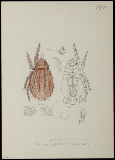 | Keywords: Naturalis Biodiversity Center - RMNH.ART.1860 - Carnisia peltifer (C. L. Koch) - Mites - Collection Anthonie Cornelis Oudemans.jpeg Dimensions artwork 16 5 x 23 5 cm Document type Carnisia Individual count Infraspecific epithet Infraspecific rank Institution Naturalis Kind of unit artwork Kind of unit specimen Life stage Adult Medium artwork drawing with black and coloured pencil paper Nomenclatural code Carnisia peltifer Occurrence ID page Other fields Other versions artwork Permission license Naturalis donation PD-Art-70 Publication location Scientific name Carnisia peltifer C L Koch Scientific name authorship C L Koch Unidentified sex Source url Specific epithet peltifer State or province Subject keywords artwork Subject keywords publication Title artwork Title publication Type status Uploaded with GWToolset Naturalis_Biodiversity_Center_-_RMNH ART 1860_-_Carnisia_peltifer_ C _L _Koch _-_Mites_-_Collection_Anthonie_Cornelis_Oudemans http //medialib naturalis nl/file/id/RMNH ART 1860/format/large Media donated by Naturalis Biodiversity Center Oudemans Mite Collection at Naturalis Biodiversity Center Carnisia Carnisia peltifer |