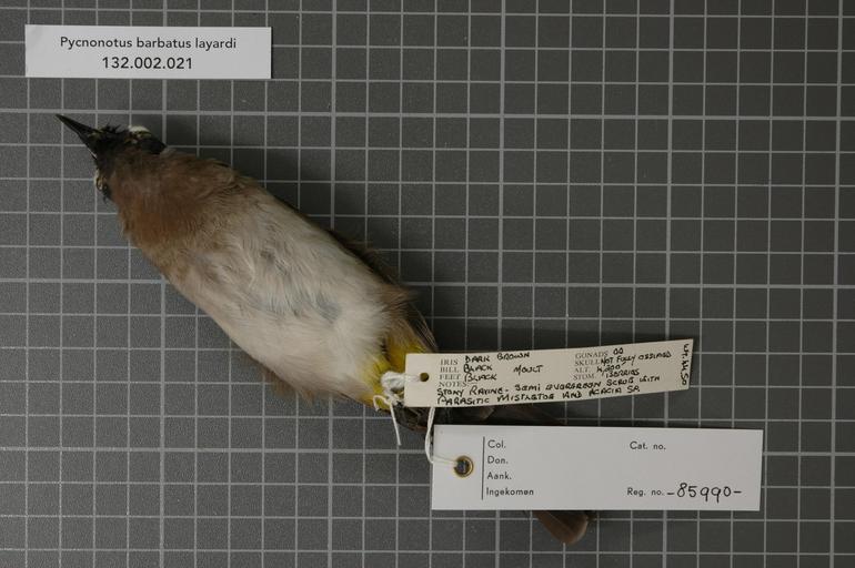 | Keywords: Naturalis Biodiversity Center - RMNH.AVES.85990 2 - Pycnonotus barbatus layardi Gurney, 1879 - Pycnonotidae - bird skin specimen.jpeg artwork Dimensions artwork Document type Pycnonotidae Pycnonotus Individual count 1 Infraspecific epithet layardi Infraspecific rank Institution Naturalis Kind of unit artwork Kind of unit specimen skin Life stage adult South Africa N W Transvaal Magaliesberg foothills 15 Km's West of Magaliesberg Town Medium artwork Nomenclatural code Bodily condition moult Occurrence ID page Other fields Other versions artwork Permission license Naturalis donation CC-0 Publication location Scientific name Pycnonotus barbatus layardi Gurney 1879 Scientific name authorship Gurney 1879 male Source url http //bioportal naturalis nl Specific epithet barbatus State or province N W Transvaal Magaliesberg foothills Subject keywords artwork Subject keywords publication Title artwork Title publication Type status Uploaded with GWToolset Naturalis_Biodiversity_Center_-_RMNH AVES 85990_2_-_Pycnonotus_barbatus_layardi_Gurney _1879_-_Pycnonotidae_-_bird_skin_specimen http //medialib naturalis nl/file/id/RMNH AVES 85990_2/format/large Media donated by Naturalis Biodiversity Center Songbird specimens at Naturalis Biodiversity Center Pycnonotus tricolor museum specimens Moulting birds |