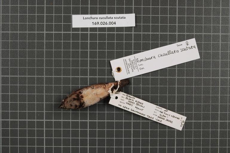 | Keywords: Naturalis Biodiversity Center - RMNH.AVES.85908 2 - Lonchura cucullata scutata (Heuglin, 1863) - Estrildidae - bird skin specimen.jpeg artwork Dimensions artwork Document type Estrildidae Lonchura Individual count 1 Infraspecific epithet scutata Infraspecific rank Institution Naturalis Kind of unit artwork Kind of unit specimen skin Life stage immature South Africa North Western Natal Drakensberg Foothillls near van Reenen Medium artwork Nomenclatural code Occurrence ID page Other fields Other versions artwork Permission license Naturalis donation CC-0 Publication location Scientific name Lonchura cucullata scutata Heuglin 1863 Scientific name authorship Heuglin 1863 female Source url http //bioportal naturalis nl Specific epithet cucullata State or province North Western Natal Drakensberg Foothillls near van Reenen Subject keywords artwork Subject keywords publication Title artwork Title publication Type status Uploaded with GWToolset Naturalis_Biodiversity_Center_-_RMNH AVES 85908_2_-_Lonchura_cucullata_scutata_ Heuglin _1863 _-_Estrildidae_-_bird_skin_specimen http //medialib naturalis nl/file/id/RMNH AVES 85908_2/format/large Media donated by Naturalis Biodiversity Center Songbird specimens at Naturalis Biodiversity Center Lonchura cucullata museum specimens |