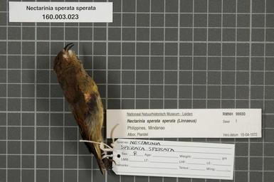 Keywords: Naturalis Biodiversity Center - RMNH.AVES.99930 1 - Nectarinia sperata sperata (Linnaeus, 1766) - Nectariniidae - bird skin specimen.jpeg artwork Dimensions artwork Document type Nectariniidae Nectarinia Individual count 1 Infraspecific epithet sperata Infraspecific rank Institution Naturalis Kind of unit artwork Kind of unit specimen skin Life stage Philippines Mindanao Id Surigao del Norte Plaridel Albor Medium artwork Nomenclatural code Occurrence ID page Other fields Other versions artwork Permission license Naturalis donation CC-0 Publication location Scientific name Nectarinia sperata sperata Linnaeus 1766 Scientific name authorship Linnaeus 1766 female Source url http //bioportal naturalis nl Specific epithet sperata State or province Subject keywords artwork Subject keywords publication Title artwork Title publication Type status Uploaded with GWToolset Naturalis_Biodiversity_Center_-_RMNH AVES 99930_1_-_Nectarinia_sperata_sperata_ Linnaeus _1766 _-_Nectariniidae_-_bird_skin_specimen http //medialib naturalis nl/file/id/RMNH AVES 99930_1/format/large Media donated by Naturalis Biodiversity Center Songbird specimens at Naturalis Biodiversity Center Leptocoma sperata |