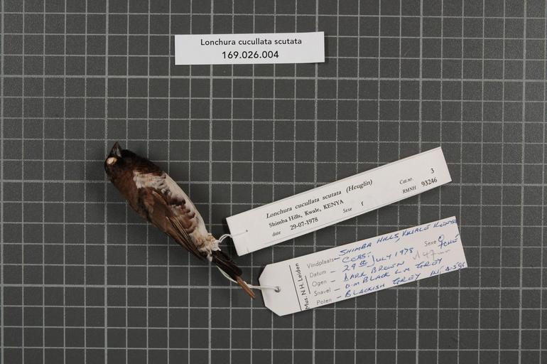 | Keywords: Naturalis Biodiversity Center - RMNH.AVES.93246 1 - Lonchura cucullata scutata (Heuglin, 1863) - Estrildidae - bird skin specimen.jpeg artwork Dimensions artwork Document type Estrildidae Lonchura Individual count 1 Infraspecific epithet scutata Infraspecific rank Institution Naturalis Kind of unit artwork Kind of unit specimen skin Life stage Kenya Kwale Shimba Hills Medium artwork Nomenclatural code Occurrence ID page Other fields Other versions artwork Permission license Naturalis donation CC-0 Publication location Scientific name Lonchura cucullata scutata Heuglin 1863 Scientific name authorship Heuglin 1863 female Source url http //bioportal naturalis nl Specific epithet cucullata State or province Kwale Shimba Hills Subject keywords artwork Subject keywords publication Title artwork Title publication Type status Uploaded with GWToolset Naturalis_Biodiversity_Center_-_RMNH AVES 93246_1_-_Lonchura_cucullata_scutata_ Heuglin _1863 _-_Estrildidae_-_bird_skin_specimen http //medialib naturalis nl/file/id/RMNH AVES 93246_1/format/large Media donated by Naturalis Biodiversity Center Songbird specimens at Naturalis Biodiversity Center Lonchura cucullata museum specimens |