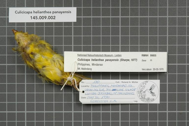 Keywords: Naturalis Biodiversity Center - RMNH.AVES.99855 1 - Culicicapa helianthea panayensis (Sharpe, 1877) - Muscicapidae - bird skin specimen.jpeg artwork Dimensions artwork Document type Muscicapidae Culicicapa Individual count 1 Infraspecific epithet panayensis Infraspecific rank Institution Naturalis Kind of unit artwork Kind of unit specimen skin Life stage Philippines Mindanao Isl Lanao Del Sur Lumba-Bayabao Mt Malindang 300 Line Siwagat Medium artwork Nomenclatural code Occurrence ID page Other fields Other versions artwork Permission license Naturalis donation CC-0 Publication location Scientific name Culicicapa helianthea panayensis Sharpe 1877 Scientific name authorship Sharpe 1877 male Source url http //bioportal naturalis nl Specific epithet helianthea State or province Subject keywords artwork Subject keywords publication Title artwork Title publication Type status Uploaded with GWToolset Naturalis_Biodiversity_Center_-_RMNH AVES 99855_1_-_Culicicapa_helianthea_panayensis_ Sharpe _1877 _-_Muscicapidae_-_bird_skin_specimen http //medialib naturalis nl/file/id/RMNH AVES 99855_1/format/large Media donated by Naturalis Biodiversity Center Songbird specimens at Naturalis Biodiversity Center Culicicapa helianthea museum specimens |