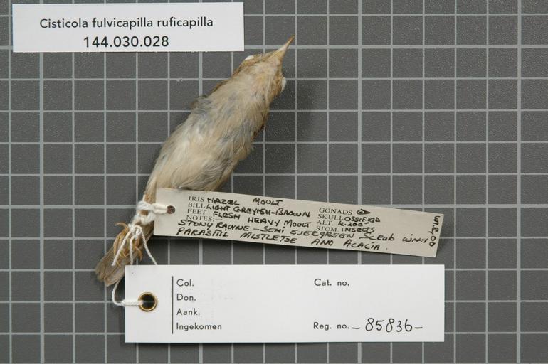 | Keywords: Naturalis Biodiversity Center - RMNH.AVES.85836 2 - Cisticola fulvicapilla ruficapilla (Smith, 1842) - Sylviidae - bird skin specimen.jpeg artwork Dimensions artwork Document type Sylviidae Cisticola Individual count 1 Infraspecific epithet ruficapilla Infraspecific rank Institution Naturalis Kind of unit artwork Kind of unit specimen skin Life stage adult South Africa N W Transvaal Magaliesberg foothills 15 Km's West of Magaliesberg Town Medium artwork Nomenclatural code Occurrence ID page Other fields Other versions artwork Permission license Naturalis donation CC-0 Publication location Scientific name Cisticola fulvicapilla ruficapilla Smith 1842 Scientific name authorship Smith 1842 female Source url http //bioportal naturalis nl Specific epithet fulvicapilla State or province N W Transvaal Subject keywords artwork Subject keywords publication Title artwork Title publication Type status Uploaded with GWToolset Naturalis_Biodiversity_Center_-_RMNH AVES 85836_2_-_Cisticola_fulvicapilla_ruficapilla_ Smith _1842 _-_Sylviidae_-_bird_skin_specimen http //medialib naturalis nl/file/id/RMNH AVES 85836_2/format/large Media donated by Naturalis Biodiversity Center Songbird specimens at Naturalis Biodiversity Center Cisticola fulvicapilla museum specimens |