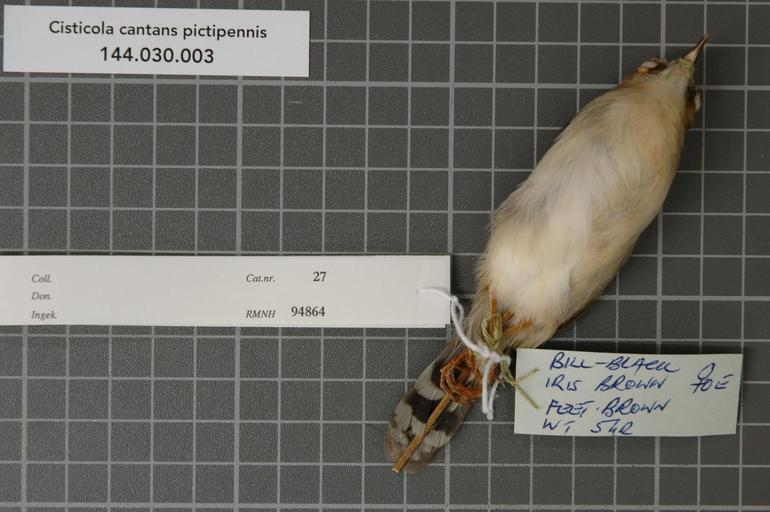 | Keywords: Naturalis Biodiversity Center - RMNH.AVES.94864 2 - Cisticola cantans pictipennis Madarász, 1904 - Sylviidae - bird skin specimen.jpeg artwork Dimensions artwork Document type Sylviidae Cisticola Individual count 1 Infraspecific epithet pictipennis Infraspecific rank Institution Naturalis Kind of unit artwork Kind of unit specimen skin Life stage Kenya Machakos District Muumandu Hill Medium artwork Nomenclatural code Occurrence ID page Other fields Other versions artwork Permission license Naturalis donation CC-0 Publication location Scientific name Cisticola cantans pictipennis Madarász 1904 Scientific name authorship Madarász 1904 female Source url http //bioportal naturalis nl Specific epithet cantans State or province Machakos District Subject keywords artwork Subject keywords publication Title artwork Title publication Type status Uploaded with GWToolset Naturalis_Biodiversity_Center_-_RMNH AVES 94864_2_-_Cisticola_cantans_pictipennis_Madarász _1904_-_Sylviidae_-_bird_skin_specimen http //medialib naturalis nl/file/id/RMNH AVES 94864_2/format/large Media donated by Naturalis Biodiversity Center Songbird specimens at Naturalis Biodiversity Center Cisticola cantans museum specimens |