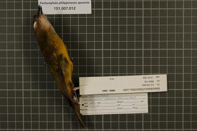 Keywords: Naturalis Biodiversity Center - RMNH.AVES.99881 1 - Pachycephala philippinensis apoensis (Mearns, 1905) - Pachycephalidae - bird skin specimen.jpeg artwork Dimensions artwork Document type Pachycephalidae Pachycephala Individual count 1 Infraspecific epithet apoensis Infraspecific rank Institution Naturalis Kind of unit artwork Kind of unit specimen skin Life stage Philippines Mindanao Lanao del Sur Lumba-Bayabao Mt Piagayungan Saronayan Medium artwork Nomenclatural code Occurrence ID page Other fields Other versions artwork Permission license Naturalis donation CC-0 Publication location Scientific name Pachycephala philippinensis apoensis Mearns 1905 Scientific name authorship Mearns 1905 male Source url http //bioportal naturalis nl Specific epithet philippinensis State or province Mindanao Lanao del Sur Lumba-Bayabao Subject keywords artwork Subject keywords publication Title artwork Title publication Type status Uploaded with GWToolset Naturalis_Biodiversity_Center_-_RMNH AVES 99881_1_-_Pachycephala_philippinensis_apoensis_ Mearns _1905 _-_Pachycephalidae_-_bird_skin_specimen http //medialib naturalis nl/file/id/RMNH AVES 99881_1/format/large Media donated by Naturalis Biodiversity Center Songbird specimens at Naturalis Biodiversity Center Pachycephala philippinensis apoensis |