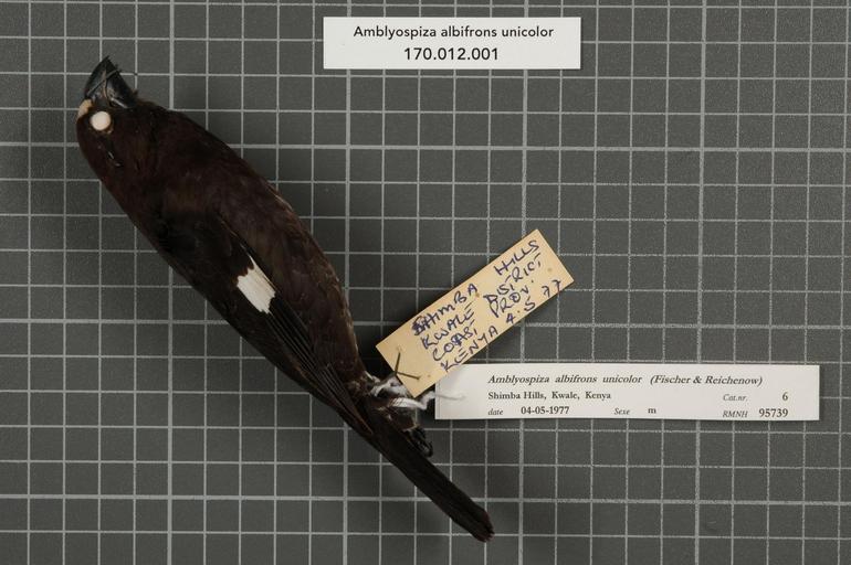 | Keywords: Naturalis Biodiversity Center - RMNH.AVES.95739 1 - Amblyospiza albifrons unicolor (Fischer and Reichenow, 1878) - Ploceidae - bird skin specimen.jpeg artwork Dimensions artwork Document type Ploceidae Amblyospiza Individual count 1 Infraspecific epithet unicolor Infraspecific rank Institution Naturalis Kind of unit artwork Kind of unit specimen skin Life stage Kenya Coast Prov Kwale District Shimba Hills Medium artwork Nomenclatural code Occurrence ID page Other fields Other versions artwork Permission license Naturalis donation CC-0 Publication location Scientific name Amblyospiza albifrons unicolor Fischer and Reichenow 1878 Scientific name authorship Fischer and Reichenow 1878 male Source url http //bioportal naturalis nl Specific epithet albifrons State or province Coast Prov Kwale District Shimba Hills Subject keywords artwork Subject keywords publication Title artwork Title publication Type status Uploaded with GWToolset Naturalis_Biodiversity_Center_-_RMNH AVES 95739_1_-_Amblyospiza_albifrons_unicolor_ Fischer_and_Reichenow _1878 _-_Ploceidae_-_bird_skin_specimen http //medialib naturalis nl/file/id/RMNH AVES 95739_1/format/large Media donated by Naturalis Biodiversity Center Songbird specimens at Naturalis Biodiversity Center Amblyospiza albifrons museum specimens |