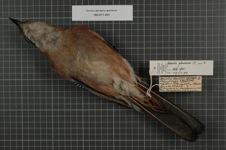 Keywords: Naturalis Biodiversity Center - RMNH.AVES.68073 1 - Garrulus glandarius glandarius (Linnaeus, 1758) - Corvidae - bird skin specimen.jpeg artwork Dimensions artwork Document type Corvidae Garrulus Individual count 1 Infraspecific epithet glandarius Infraspecific rank Institution Naturalis Kind of unit artwork Kind of unit specimen skin Life stage Netherlands Gelderland Wilp Kleine Noordijk Medium artwork Nomenclatural code ADDITIONAL info see drawing circle preceding name Occurrence ID page Other fields Other versions artwork Permission license Naturalis donation CC-0 Publication location Scientific name Garrulus glandarius glandarius Linnaeus 1758 Scientific name authorship Linnaeus 1758 male Source url http //bioportal naturalis nl Specific epithet glandarius State or province Gelderland Subject keywords artwork Subject keywords publication Title artwork Title publication Type status Uploaded with GWToolset Naturalis_Biodiversity_Center_-_RMNH AVES 68073_1_-_Garrulus_glandarius_glandarius_ Linnaeus _1758 _-_Corvidae_-_bird_skin_specimen http //medialib naturalis nl/file/id/RMNH AVES 68073_1/format/large Media donated by Naturalis Biodiversity Center Songbird specimens at Naturalis Biodiversity Center Garrulus glandarius glandarius museum specimens |