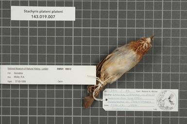 Keywords: Naturalis Biodiversity Center - RMNH.AVES.99812 2 - Stachyris plateni plateni (Blasius, 1890) - Timaliidae - bird skin specimen.jpeg artwork Dimensions artwork Document type Timaliidae Stachyris Individual count 1 Infraspecific epithet plateni Infraspecific rank Institution Naturalis Kind of unit artwork Kind of unit specimen skin Life stage adult Philippines Mindanao Id Surigao del Sur Prov Sibahay Lanuza Medium artwork Nomenclatural code Occurrence ID page Other fields Other versions artwork Permission license Naturalis donation CC-0 Publication location Scientific name Stachyris plateni plateni Blasius 1890 Scientific name authorship Blasius 1890 male Source url http //bioportal naturalis nl Specific epithet plateni State or province Subject keywords artwork Subject keywords publication Title artwork Title publication Type status Uploaded with GWToolset Naturalis_Biodiversity_Center_-_RMNH AVES 99812_2_-_Stachyris_plateni_plateni_ Blasius _1890 _-_Timaliidae_-_bird_skin_specimen http //medialib naturalis nl/file/id/RMNH AVES 99812_2/format/large Media donated by Naturalis Biodiversity Center Songbird specimens at Naturalis Biodiversity Center Dasycrotapha plateni |