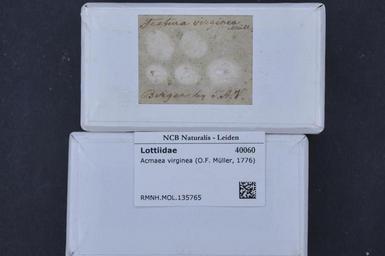 | Keywords: Naturalis Biodiversity Center - RMNH.MOL.135765 1 - Tectura virginea (Müller, 1776) - Lottiidae - Mollusc shell.jpeg artwork Dimensions artwork Document type Lottiidae Tectura Individual count Infraspecific epithet Infraspecific rank Institution Naturalis Kind of unit artwork Kind of unit specimen shell Life stage Medium artwork Nomenclatural code Source institute Leiden Scale the width of the text on the species/QR-code label is 38 mm Occurrence ID page Other fields Other versions artwork Permission license Naturalis donation CC-0 Mollusca Publication location Scientific name Tectura virginea Müller 1776 Scientific name authorship Müller 1776 Source url http //bioportal naturalis nl Specific epithet virginea State or province Subject keywords artwork Subject keywords publication Title artwork Title publication Type status Uploaded with GWToolset Naturalis_Biodiversity_Center_-_RMNH MOL 135765_1_-_Tectura_virginea_ Müller _1776 _-_Lottiidae_-_Mollusc_shell http //medialib naturalis nl/file/id/RMNH MOL 135765_1/format/large Molluscs at Naturalis from the Rijksmuseum van Natuurlijke Historie Media donated by Naturalis Biodiversity Center Tectura virginea |