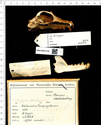 Keywords: Naturalis Biodiversity Center - RMNH.MAM.12766 lat - Pteropus vampyrus malaccensis - skeleton (whole).jpeg artwork Dimensions artwork Document type Pteropus Individual count 1 Infraspecific epithet malaccensis Infraspecific rank Institution Naturalis Kind of unit artwork Kind of unit specimen skeleton whole Life stage N O Sumatra Tandjong Merawa Medium artwork Nomenclatural code Occurrence ID page Other fields Other versions artwork Permission license Naturalis donation CC-0 Publication location Scientific name Pteropus vampyrus malaccensis Scientific name authorship male Source url http //bioportal naturalis nl Specific epithet vampyrus State or province Subject keywords artwork Subject keywords publication Title artwork Title publication Type status Uploaded with GWToolset Naturalis_Biodiversity_Center_-_RMNH MAM 12766_lat_-_Pteropus_vampyrus_malaccensis_-_skeleton_ whole http //medialib naturalis nl/file/id/RMNH MAM 12766_lat/format/large Media donated by Naturalis Biodiversity Center Mammals at Naturalis from the Rijksmuseum van Natuurlijke Historie Pteropus vampyrus Pteropus |