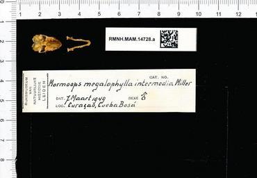 Keywords: Naturalis Biodiversity Center - RMNH.MAM.14728.a pal - Mormoops megalophylla intermedia - skull.jpeg artwork Dimensions artwork Document type Mormoops Individual count 1 Infraspecific epithet intermedia Infraspecific rank Institution Naturalis Kind of unit artwork Kind of unit specimen skull Life stage Curaçao Cueba Bosá Medium artwork Nomenclatural code Occurrence ID page Other fields Other versions artwork Permission license Naturalis donation CC-0 Publication location Scientific name Mormoops megalophylla intermedia Scientific name authorship male Source url http //bioportal naturalis nl Specific epithet megalophylla State or province Subject keywords artwork Subject keywords publication Title artwork Title publication Type status Uploaded with GWToolset Naturalis_Biodiversity_Center_-_RMNH MAM 14728 a_pal_-_Mormoops_megalophylla_intermedia_-_skull http //medialib naturalis nl/file/id/RMNH MAM 14728 a_pal/format/large Media donated by Naturalis Biodiversity Center Mammals at Naturalis from the Rijksmuseum van Natuurlijke Historie Mormoops megalophylla Mormoops |