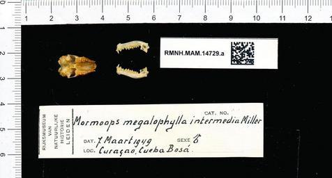 Keywords: Naturalis Biodiversity Center - RMNH.MAM.14729.a pal - Mormoops megalophylla intermedia - skull.jpeg artwork Dimensions artwork Document type Mormoops Individual count 1 Infraspecific epithet intermedia Infraspecific rank Institution Naturalis Kind of unit artwork Kind of unit specimen skull Life stage Curaçao Cueba Bosá Medium artwork Nomenclatural code Occurrence ID page Other fields Other versions artwork Permission license Naturalis donation CC-0 Publication location Scientific name Mormoops megalophylla intermedia Scientific name authorship male Source url http //bioportal naturalis nl Specific epithet megalophylla State or province Subject keywords artwork Subject keywords publication Title artwork Title publication Type status Uploaded with GWToolset Naturalis_Biodiversity_Center_-_RMNH MAM 14729 a_pal_-_Mormoops_megalophylla_intermedia_-_skull http //medialib naturalis nl/file/id/RMNH MAM 14729 a_pal/format/large Media donated by Naturalis Biodiversity Center Mammals at Naturalis from the Rijksmuseum van Natuurlijke Historie Mormoops megalophylla Mormoops |