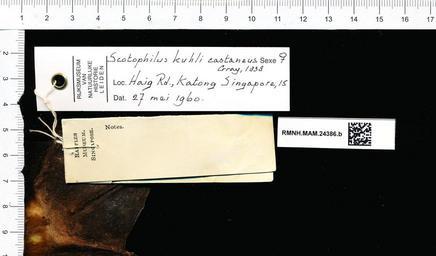 Keywords: Naturalis Biodiversity Center - RMNH.MAM.24386.b gen - Scotophilus kuhlii castaneus - skin.jpeg artwork Dimensions artwork Document type Scotophilus Individual count 1 Infraspecific epithet castaneus Infraspecific rank Institution Naturalis Kind of unit artwork Kind of unit specimen skin Life stage Haig Rd Katong Singapore 15 Medium artwork Nomenclatural code Occurrence ID page Other fields Other versions artwork Permission license Naturalis donation CC-0 Publication location Scientific name Scotophilus kuhlii castaneus Scientific name authorship female Source url http //bioportal naturalis nl Specific epithet kuhlii State or province Subject keywords artwork Subject keywords publication Title artwork Title publication Type status Uploaded with GWToolset Naturalis_Biodiversity_Center_-_RMNH MAM 24386 b_gen_-_Scotophilus_kuhlii_castaneus_-_skin http //medialib naturalis nl/file/id/RMNH MAM 24386 b_gen/format/large Media donated by Naturalis Biodiversity Center Mammals at Naturalis from the Rijksmuseum van Natuurlijke Historie Scotophilus kuhlii