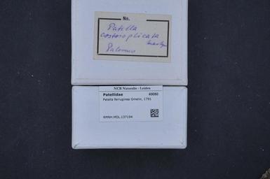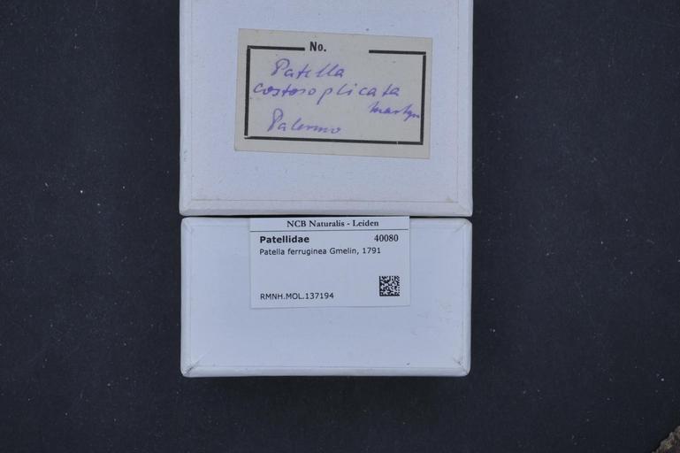 Keywords: Naturalis Biodiversity Center - RMNH.MOL.137194 1 - Patella ferruginea Gmelin, 1791 - Patellidae - Mollusc shell.jpeg artwork Dimensions artwork Document type Patellidae subfamily Patellinae Patella Individual count Infraspecific epithet Infraspecific rank Institution Naturalis Kind of unit artwork Kind of unit specimen shell Life stage Medium artwork Nomenclatural code Source institute Leiden Scale the width of the text on the species/QR-code label is 38 mm Occurrence ID page Other fields Other versions artwork Permission license Naturalis donation CC-0 Mollusca Publication location Scientific name Patella ferruginea Gmelin 1791 Scientific name authorship Gmelin 1791 Source url http //bioportal naturalis nl Specific epithet ferruginea State or province Subject keywords artwork Subject keywords publication Title artwork Title publication Type status Uploaded with GWToolset Naturalis_Biodiversity_Center_-_RMNH MOL 137194_1_-_Patella_ferruginea_Gmelin _1791_-_Patellidae_-_Mollusc_shell http //medialib naturalis nl/file/id/RMNH MOL 137194_1/format/large Molluscs at Naturalis from the Rijksmuseum van Natuurlijke Historie Media donated by Naturalis Biodiversity Center Patella mollusc Patella ferruginea |