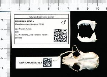 Keywords: Naturalis Biodiversity Center - RMNH.MAM.51748.a pal - Mustela erminea Linnaeus, 1758 - skull.jpeg artwork Dimensions artwork Document type Mustelidae Mustela Individual count 1 Infraspecific epithet Infraspecific rank Institution Naturalis Kind of unit artwork Kind of unit specimen skull Life stage Nederland Zuid-Holland Hei en Boeicop Medium artwork Nomenclatural code Occurrence ID page Other fields Other versions artwork Permission license Naturalis donation CC-0 Publication location Scientific name Mustela erminea Linnaeus 1758 Scientific name authorship Linnaeus 1758 male Source url http //bioportal naturalis nl Specific epithet erminea State or province Zuid-Holland Subject keywords artwork Subject keywords publication Title artwork Title publication Type status Uploaded with GWToolset Naturalis_Biodiversity_Center_-_RMNH MAM 51748 a_pal_-_Mustela_erminea_Linnaeus _1758_-_skull http //medialib naturalis nl/file/id/RMNH MAM 51748 a_pal/format/large Mammals at Naturalis from the Rijksmuseum van Natuurlijke Historie Media donated by Naturalis Biodiversity Center Mustela erminea Mustela |