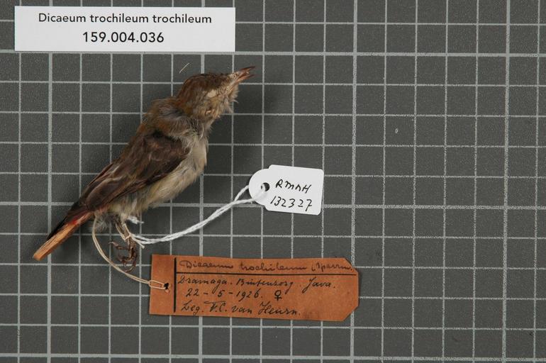 Keywords: Naturalis Biodiversity Center - RMNH.AVES.132327 1 - Dicaeum trochileum trochileum Sparrman, 1789 - Dicaeidae - bird skin specimen.jpeg artwork Dimensions artwork Document type Dicaeidae Dicaeum Individual count 1 Infraspecific epithet trochileum Infraspecific rank Institution Naturalis Kind of unit artwork Kind of unit specimen skin Life stage Indonesia Java Buitenzorg Dramaga Medium artwork Nomenclatural code Occurrence ID page Other fields Other versions artwork Permission license Naturalis donation CC-0 Publication location Scientific name Dicaeum trochileum trochileum Sparrman 1789 Scientific name authorship Sparrman 1789 female Source url http //bioportal naturalis nl Specific epithet trochileum State or province Subject keywords artwork Subject keywords publication Title artwork Title publication Type status Uploaded with GWToolset Naturalis_Biodiversity_Center_-_RMNH AVES 132327_1_-_Dicaeum_trochileum_trochileum_Sparrman _1789_-_Dicaeidae_-_bird_skin_specimen http //medialib naturalis nl/file/id/RMNH AVES 132327_1/format/large Media donated by Naturalis Biodiversity Center Songbird specimens at Naturalis Biodiversity Center Dicaeum trochileum Dicaeum |