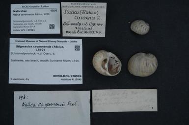 Keywords: Naturalis Biodiversity Center - RMNH.MOL.120924 - Natica cayennensis Récluz, 1850 - Naticidae - Mollusc shell.jpeg artwork Dimensions artwork Document type Naticidae subfamily Naticinae Natica Individual count Infraspecific epithet Infraspecific rank Institution Naturalis Kind of unit artwork Kind of unit specimen shell Life stage Suriname sea beach mouth Suriname River; 1914 Medium artwork Nomenclatural code Source institute Leiden Scale the width of the text on the species/QR-code label is 38 mm Occurrence ID page Other fields Other versions artwork Permission license Naturalis donation CC-0 Mollusca Publication location Scientific name Natica cayennensis Récluz 1850 Scientific name authorship Récluz 1850 Source url http //bioportal naturalis nl Specific epithet cayennensis State or province Subject keywords artwork Subject keywords publication Title artwork Title publication Type status - Uploaded with GWToolset Naturalis_Biodiversity_Center_-_RMNH MOL 120924_-_Natica_cayennensis_Récluz _1850_-_Naticidae_-_Mollusc_shell http //medialib naturalis nl/file/id/RMNH MOL 120924/format/large Molluscs at Naturalis from the Rijksmuseum van Natuurlijke Historie Media donated by Naturalis Biodiversity Center Natica Natica cayennensis |