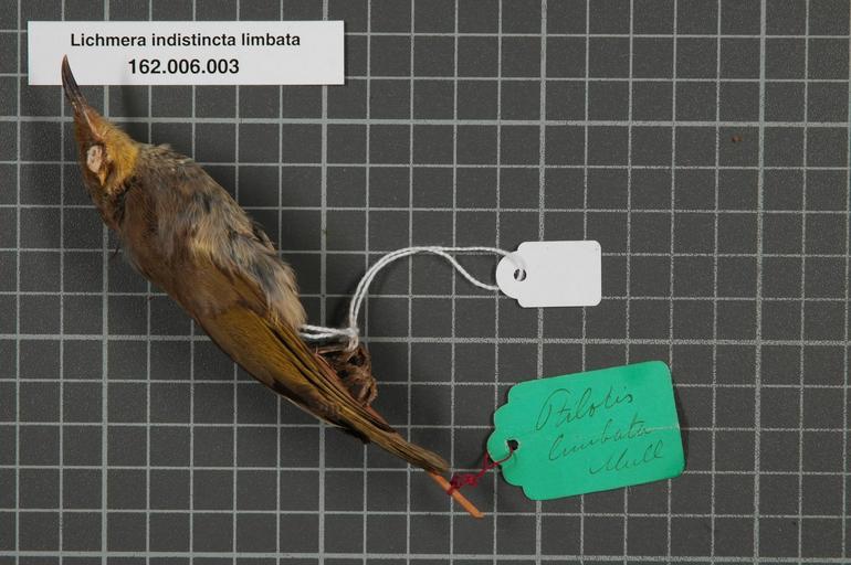 | Keywords: Naturalis Biodiversity Center - RMNH.AVES.133722 1 - Lichmera indistincta limbata (S. Muller, 1843) - Meliphagidae - bird skin specimen.jpeg artwork Dimensions artwork Document type Meliphagidae Lichmera Individual count 1 Infraspecific epithet limbata Infraspecific rank Institution Naturalis Kind of unit artwork Kind of unit specimen skin Life stage Lombok Pantjor Medium artwork Nomenclatural code General remarks Probably collected and donated by vorderman Occurrence ID page Other fields Other versions artwork Permission license Naturalis donation CC-0 Publication location Scientific name Lichmera indistincta limbata S Muller 1843 Scientific name authorship S Müller 1843 Source url http //bioportal naturalis nl Specific epithet indistincta State or province Lombok Subject keywords artwork Subject keywords publication Title artwork Title publication Type status Uploaded with GWToolset Naturalis_Biodiversity_Center_-_RMNH AVES 133722_1_-_Lichmera_indistincta_limbata_ S _Muller _1843 _-_Meliphagidae_-_bird_skin_specimen http //medialib naturalis nl/file/id/RMNH AVES 133722_1/format/large Media donated by Naturalis Biodiversity Center Songbird specimens at Naturalis Biodiversity Center Lichmera indistincta Lichmera |