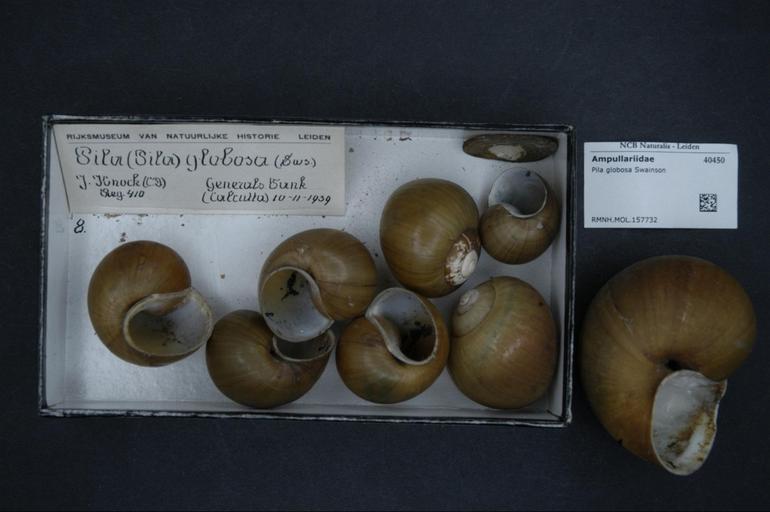 | Keywords: Naturalis Biodiversity Center - RMNH.MOL.157732 - Pila globosa Swainson - Ampullariidae - Mollusc shell.jpeg artwork Dimensions artwork Document type Ampullariidae Pila Individual count Infraspecific epithet Infraspecific rank Institution Naturalis Kind of unit artwork Kind of unit specimen shell Life stage Medium artwork Nomenclatural code Scale the width of the text on the species/QR-code label is 38 mm Occurrence ID page Other fields Other versions artwork Permission license Naturalis donation CC-0 Mollusca Publication location Scientific name Pila globosa Swainson Scientific name authorship Swainson Source url http //bioportal naturalis nl Specific epithet globosa State or province Subject keywords artwork Subject keywords publication Title artwork Title publication Type status Uploaded with GWToolset Naturalis_Biodiversity_Center_-_RMNH MOL 157732_-_Pila_globosa_Swainson_-_Ampullariidae_-_Mollusc_shell http //medialib naturalis nl/file/id/RMNH MOL 157732/format/large Media donated by Naturalis Biodiversity Center Molluscs at Naturalis from the Rijksmuseum van Natuurlijke Historie Pila globosa Pila genus |