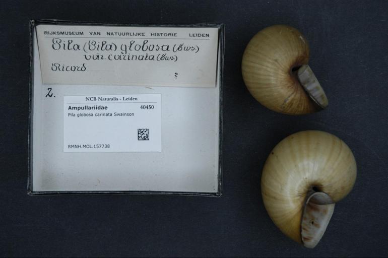 | Keywords: Naturalis Biodiversity Center - RMNH.MOL.157738 - Pila globosa carinata Swainson - Ampullariidae - Mollusc shell.jpeg artwork Dimensions artwork Document type Ampullariidae Pila Individual count Infraspecific epithet carinata Infraspecific rank Institution Naturalis Kind of unit artwork Kind of unit specimen shell Life stage Medium artwork Nomenclatural code Scale the width of the text on the species/QR-code label is 38 mm Occurrence ID page Other fields Other versions artwork Permission license Naturalis donation CC-0 Mollusca Publication location Scientific name Pila globosa carinata Swainson Scientific name authorship Swainson Source url http //bioportal naturalis nl Specific epithet globosa State or province Subject keywords artwork Subject keywords publication Title artwork Title publication Type status Uploaded with GWToolset Naturalis_Biodiversity_Center_-_RMNH MOL 157738_-_Pila_globosa_carinata_Swainson_-_Ampullariidae_-_Mollusc_shell http //medialib naturalis nl/file/id/RMNH MOL 157738/format/large Media donated by Naturalis Biodiversity Center Molluscs at Naturalis from the Rijksmuseum van Natuurlijke Historie Pila globosa Pila genus |