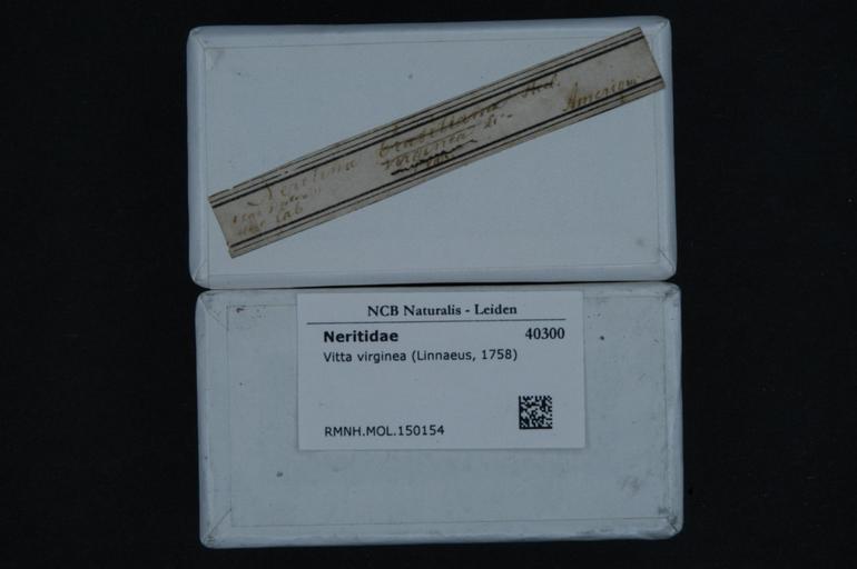 | Keywords: Naturalis Biodiversity Center - RMNH.MOL.150154 1 - Vitta virginea (Linnaeus, 1758) - Neritidae - Mollusc shell.jpeg artwork Dimensions artwork Document type Neritidae Vitta Individual count Infraspecific epithet Infraspecific rank Institution Naturalis Kind of unit artwork Kind of unit specimen shell Life stage Medium artwork Nomenclatural code Scale the width of the text on the species/QR-code label is 38 mm Occurrence ID page Other fields Other versions artwork Permission license Naturalis donation CC-0 Mollusca Publication location Scientific name Vitta virginea Linnaeus 1758 Scientific name authorship Linnaeus 1758 Source url http //bioportal naturalis nl Specific epithet virginea State or province Subject keywords artwork Subject keywords publication Title artwork Title publication Type status Uploaded with GWToolset Naturalis_Biodiversity_Center_-_RMNH MOL 150154_1_-_Vitta_virginea_ Linnaeus _1758 _-_Neritidae_-_Mollusc_shell http //medialib naturalis nl/file/id/RMNH MOL 150154_1/format/large Media donated by Naturalis Biodiversity Center Molluscs at Naturalis from the Rijksmuseum van Natuurlijke Historie Vitta virginea |