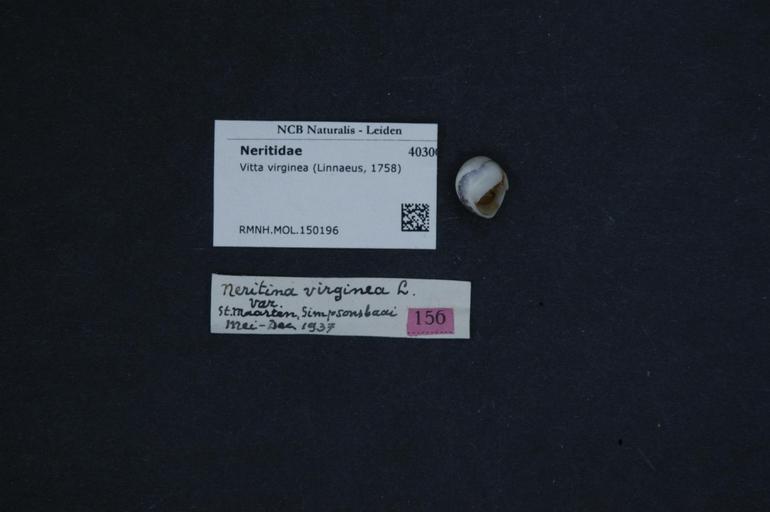 | Keywords: Naturalis Biodiversity Center - RMNH.MOL.150196 - Vitta virginea (Linnaeus, 1758) - Neritidae - Mollusc shell.jpeg artwork Dimensions artwork Document type Neritidae Vitta Individual count Infraspecific epithet Infraspecific rank Institution Naturalis Kind of unit artwork Kind of unit specimen shell Life stage Medium artwork Nomenclatural code Scale the width of the text on the species/QR-code label is 38 mm Occurrence ID page Other fields Other versions artwork Permission license Naturalis donation CC-0 Mollusca Publication location Scientific name Vitta virginea Linnaeus 1758 Scientific name authorship Linnaeus 1758 Source url http //bioportal naturalis nl Specific epithet virginea State or province Subject keywords artwork Subject keywords publication Title artwork Title publication Type status Uploaded with GWToolset Naturalis_Biodiversity_Center_-_RMNH MOL 150196_-_Vitta_virginea_ Linnaeus _1758 _-_Neritidae_-_Mollusc_shell http //medialib naturalis nl/file/id/RMNH MOL 150196/format/large Media donated by Naturalis Biodiversity Center Molluscs at Naturalis from the Rijksmuseum van Natuurlijke Historie Vitta virginea |
