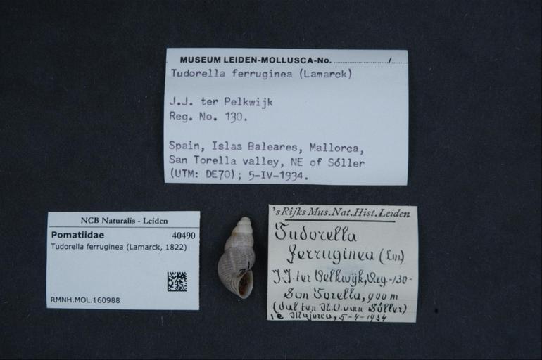 Keywords: Naturalis Biodiversity Center - RMNH.MOL.160988 - Tudorella ferruginea (Lamarck, 1822) - Pomatiidae - Mollusc shell.jpeg artwork Dimensions artwork Document type Pomatiidae subfamily Pomatiasinae Tudorella Individual count Infraspecific epithet Infraspecific rank Institution Naturalis Kind of unit artwork Kind of unit specimen shell Life stage Medium artwork Nomenclatural code Scale the width of the text on the species/QR-code label is 38 mm Occurrence ID page Other fields Other versions artwork Permission license Naturalis donation CC-0 Mollusca Publication location Scientific name Tudorella ferruginea Lamarck 1822 Scientific name authorship Lamarck 1822 Source url http //bioportal naturalis nl Specific epithet ferruginea State or province Subject keywords artwork Subject keywords publication Title artwork Title publication Type status Uploaded with GWToolset Naturalis_Biodiversity_Center_-_RMNH MOL 160988_-_Tudorella_ferruginea_ Lamarck _1822 _-_Pomatiidae_-_Mollusc_shell http //medialib naturalis nl/file/id/RMNH MOL 160988/format/large Media donated by Naturalis Biodiversity Center Molluscs at Naturalis from the Rijksmuseum van Natuurlijke Historie Tudorella ferruginea Tudorella |