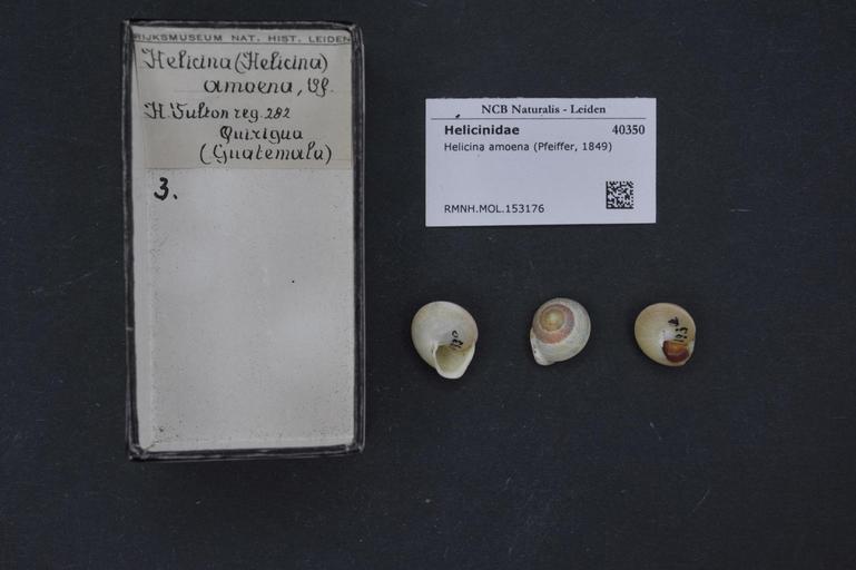 | Keywords: Naturalis Biodiversity Center - RMNH.MOL.153176 - Helicina amoena (Pfeiffer, 1849) - Helicinidae - Mollusc shell.jpeg artwork Dimensions artwork Document type Helicinidae subfamily Helicininae Helicina Individual count Infraspecific epithet Infraspecific rank Institution Naturalis Kind of unit artwork Kind of unit specimen shell Life stage Medium artwork Nomenclatural code Scale the width of the text on the species/QR-code label is 38 mm Occurrence ID page Other fields Other versions artwork Permission license Naturalis donation CC-0 Mollusca Publication location Scientific name Helicina amoena Pfeiffer 1849 Scientific name authorship Pfeiffer 1849 Source url http //bioportal naturalis nl Specific epithet amoena State or province Subject keywords artwork Subject keywords publication Title artwork Title publication Type status Uploaded with GWToolset Naturalis_Biodiversity_Center_-_RMNH MOL 153176_-_Helicina_amoena_ Pfeiffer _1849 _-_Helicinidae_-_Mollusc_shell http //medialib naturalis nl/file/id/RMNH MOL 153176/format/large Media donated by Naturalis Biodiversity Center Molluscs at Naturalis from the Rijksmuseum van Natuurlijke Historie Helicina amoena Helicina |