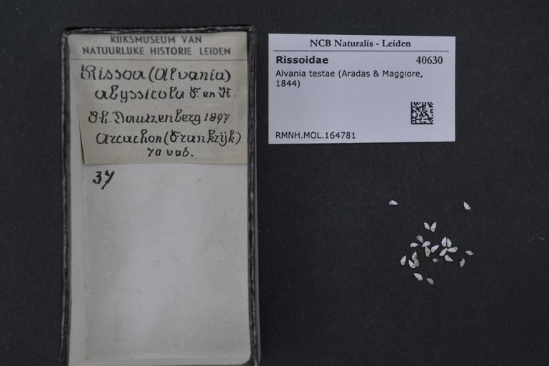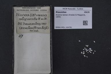 Keywords: Naturalis Biodiversity Center - RMNH.MOL.164781 - Alvania testae (Aradas & Maggiore, 1844) - Rissoidae - Mollusc shell.jpeg artwork Dimensions artwork Document type Rissoidae subfamily Rissoinae Alvania Individual count Infraspecific epithet Infraspecific rank Institution Naturalis Kind of unit artwork Kind of unit specimen shell Life stage Medium artwork Nomenclatural code Scale the width of the text on the species/QR-code label is 38 mm Occurrence ID page Other fields Other versions artwork Permission license Naturalis donation CC-0 Mollusca Publication location Scientific name Alvania testae Aradas Maggiore 1844 Scientific name authorship Aradas Maggiore 1844 Source url http //bioportal naturalis nl Specific epithet testae State or province Subject keywords artwork Subject keywords publication Title artwork Title publication Type status Uploaded with GWToolset Naturalis_Biodiversity_Center_-_RMNH MOL 164781_-_Alvania_testae_ Aradas_ _Maggiore _1844 _-_Rissoidae_-_Mollusc_shell http //medialib naturalis nl/file/id/RMNH MOL 164781/format/large Media donated by Naturalis Biodiversity Center Molluscs at Naturalis from the Rijksmuseum van Natuurlijke Historie Alvania testae |