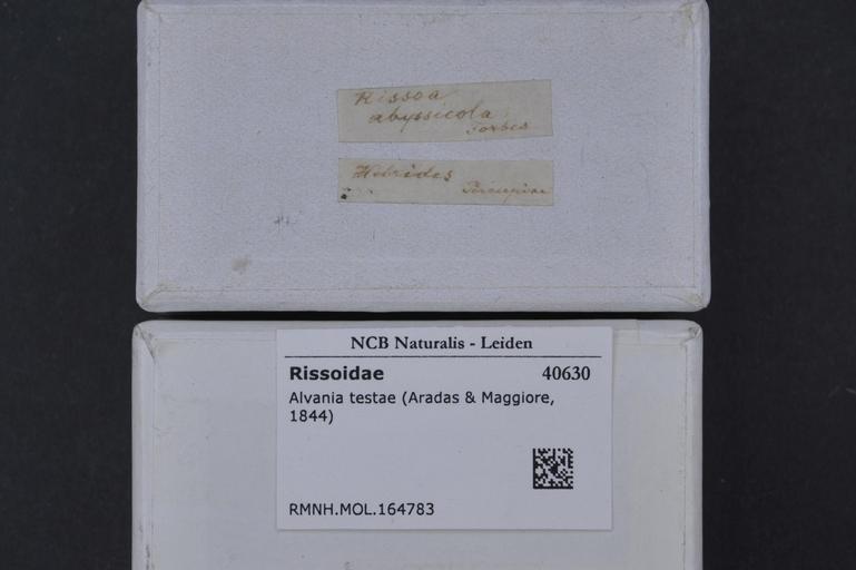 Keywords: Naturalis Biodiversity Center - RMNH.MOL.164783 1 - Alvania testae (Aradas & Maggiore, 1844) - Rissoidae - Mollusc shell.jpeg artwork Dimensions artwork Document type Rissoidae subfamily Rissoinae Alvania Individual count Infraspecific epithet Infraspecific rank Institution Naturalis Kind of unit artwork Kind of unit specimen shell Life stage Medium artwork Nomenclatural code Scale the width of the text on the species/QR-code label is 38 mm Occurrence ID page Other fields Other versions artwork Permission license Naturalis donation CC-0 Mollusca Publication location Scientific name Alvania testae Aradas Maggiore 1844 Scientific name authorship Aradas Maggiore 1844 Source url http //bioportal naturalis nl Specific epithet testae State or province Subject keywords artwork Subject keywords publication Title artwork Title publication Type status Uploaded with GWToolset Naturalis_Biodiversity_Center_-_RMNH MOL 164783_1_-_Alvania_testae_ Aradas_ _Maggiore _1844 _-_Rissoidae_-_Mollusc_shell http //medialib naturalis nl/file/id/RMNH MOL 164783_1/format/large Media donated by Naturalis Biodiversity Center Molluscs at Naturalis from the Rijksmuseum van Natuurlijke Historie Alvania testae |