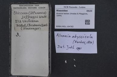 Keywords: Naturalis Biodiversity Center - RMNH.MOL.164782 - Alvania testae (Aradas & Maggiore, 1844) - Rissoidae - Mollusc shell.jpeg artwork Dimensions artwork Document type Rissoidae subfamily Rissoinae Alvania Individual count Infraspecific epithet Infraspecific rank Institution Naturalis Kind of unit artwork Kind of unit specimen shell Life stage Medium artwork Nomenclatural code Scale the width of the text on the species/QR-code label is 38 mm Occurrence ID page Other fields Other versions artwork Permission license Naturalis donation CC-0 Mollusca Publication location Scientific name Alvania testae Aradas Maggiore 1844 Scientific name authorship Aradas Maggiore 1844 Source url http //bioportal naturalis nl Specific epithet testae State or province Subject keywords artwork Subject keywords publication Title artwork Title publication Type status Uploaded with GWToolset Naturalis_Biodiversity_Center_-_RMNH MOL 164782_-_Alvania_testae_ Aradas_ _Maggiore _1844 _-_Rissoidae_-_Mollusc_shell http //medialib naturalis nl/file/id/RMNH MOL 164782/format/large Media donated by Naturalis Biodiversity Center Molluscs at Naturalis from the Rijksmuseum van Natuurlijke Historie Alvania testae |