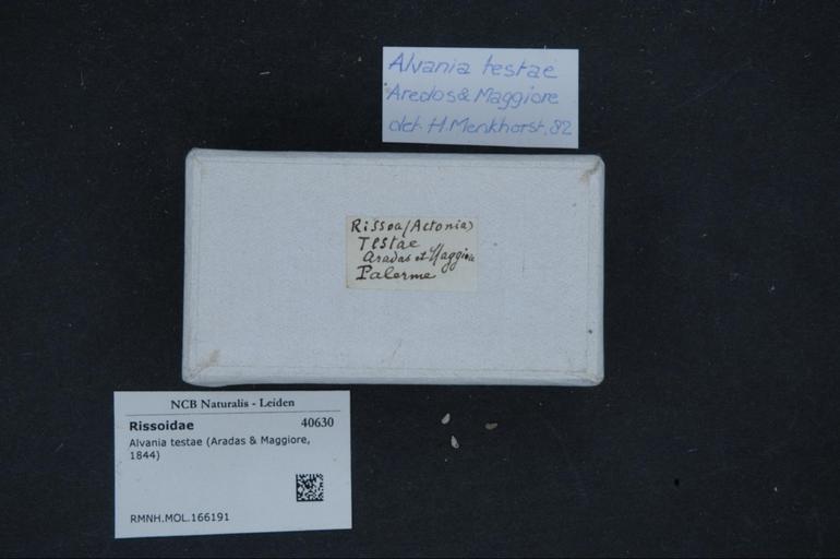 Keywords: Naturalis Biodiversity Center - RMNH.MOL.166191 1 - Alvania testae (Aradas & Maggiore, 1844) - Rissoidae - Mollusc shell.jpeg artwork Dimensions artwork Document type Rissoidae subfamily Rissoinae Alvania Individual count Infraspecific epithet Infraspecific rank Institution Naturalis Kind of unit artwork Kind of unit specimen shell Life stage Medium artwork Nomenclatural code Scale the width of the text on the species/QR-code label is 38 mm Occurrence ID page Other fields Other versions artwork Permission license Naturalis donation CC-0 Mollusca Publication location Scientific name Alvania testae Aradas Maggiore 1844 Scientific name authorship Aradas Maggiore 1844 Source url http //bioportal naturalis nl Specific epithet testae State or province Subject keywords artwork Subject keywords publication Title artwork Title publication Type status Uploaded with GWToolset Naturalis_Biodiversity_Center_-_RMNH MOL 166191_1_-_Alvania_testae_ Aradas_ _Maggiore _1844 _-_Rissoidae_-_Mollusc_shell http //medialib naturalis nl/file/id/RMNH MOL 166191_1/format/large Media donated by Naturalis Biodiversity Center Molluscs at Naturalis from the Rijksmuseum van Natuurlijke Historie Alvania testae Alvania |