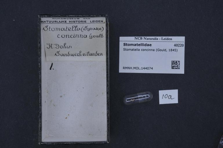 | Keywords: Naturalis Biodiversity Center - RMNH.MOL.144074 - Stomatella concinna (Gould, 1845) - Stomatellidae - Mollusc shell.jpeg artwork Dimensions artwork Document type Stomatellidae Stomatella Individual count Infraspecific epithet Infraspecific rank Institution Naturalis Kind of unit artwork Kind of unit specimen shell Life stage Medium artwork Nomenclatural code Source institute Leiden Scale the width of the text on the species/QR-code label is 38 mm Occurrence ID page Other fields Other versions artwork Permission license Naturalis donation CC-0 Mollusca Publication location Scientific name Stomatella concinna Gould 1845 Scientific name authorship Gould 1845 Source url http //bioportal naturalis nl Specific epithet concinna State or province Subject keywords artwork Subject keywords publication Title artwork Title publication Type status Uploaded with GWToolset Naturalis_Biodiversity_Center_-_RMNH MOL 144074_-_Stomatella_concinna_ Gould _1845 _-_Stomatellidae_-_Mollusc_shell http //medialib naturalis nl/file/id/RMNH MOL 144074/format/large Molluscs at Naturalis from the Rijksmuseum van Natuurlijke Historie Media donated by Naturalis Biodiversity Center Stomatella Stomatella concinna |